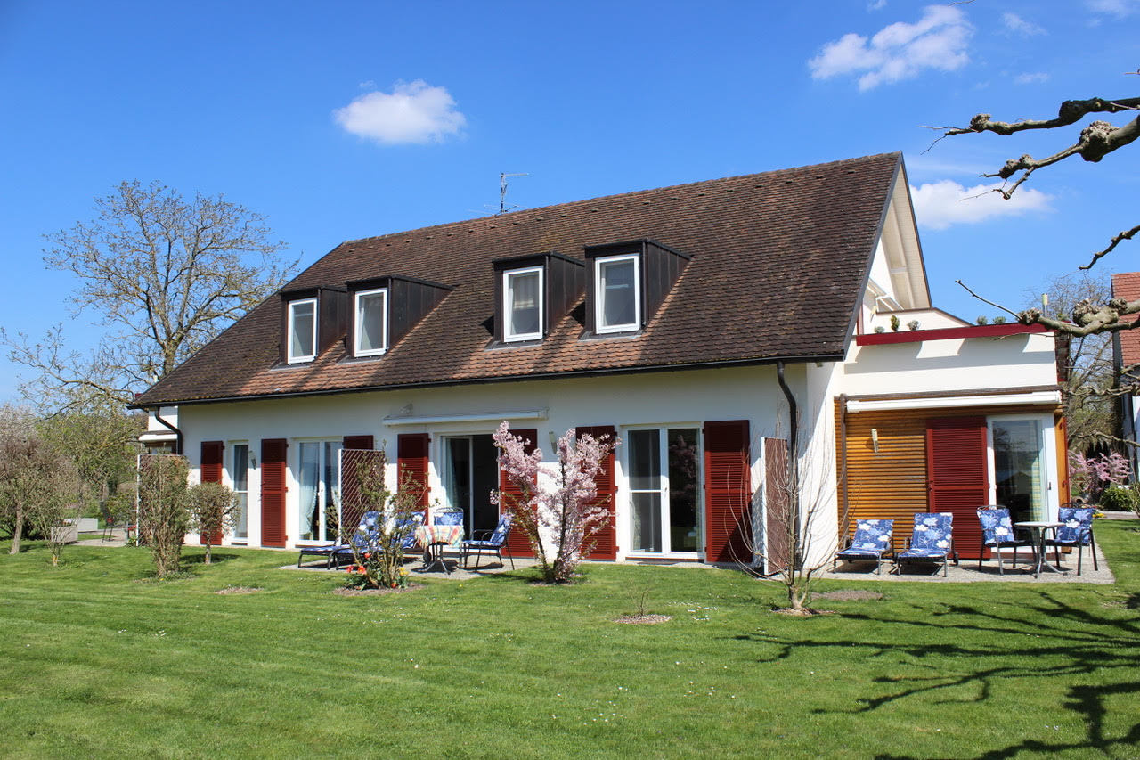 Das Birkenhaus wird wegen der Nähe zum See und den großzügigen Balkonen und Terrassen sehr geschätzt. Das Haus verfügt über Zimmer mit See und Schwimmbadblick und beherbergt eine Suite, die sich auch als Familienappartement mit einer separaten Schlafmöglichkeit eignet. Zwei der Zimmer sind ebenerdig jedoch nicht völlig barrierefrei.