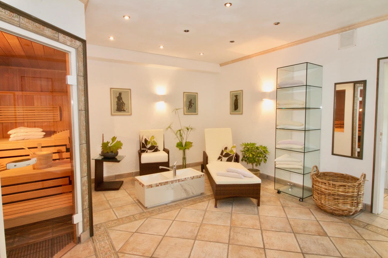 Wellness und Entspannung bieten das beheizte Schwimmbad, die Sauna, der Whirlpool und weitläufige Garten mit hauseigenem Seezugang. Fitnessgeräte, Tischtennis und Ruderboot sorgen für Appetit und für regnerisch stille oder gesellige Momente steht der schöne Biedermeier Aufenthaltsraum mit Büchern und Brettspielen bereit.